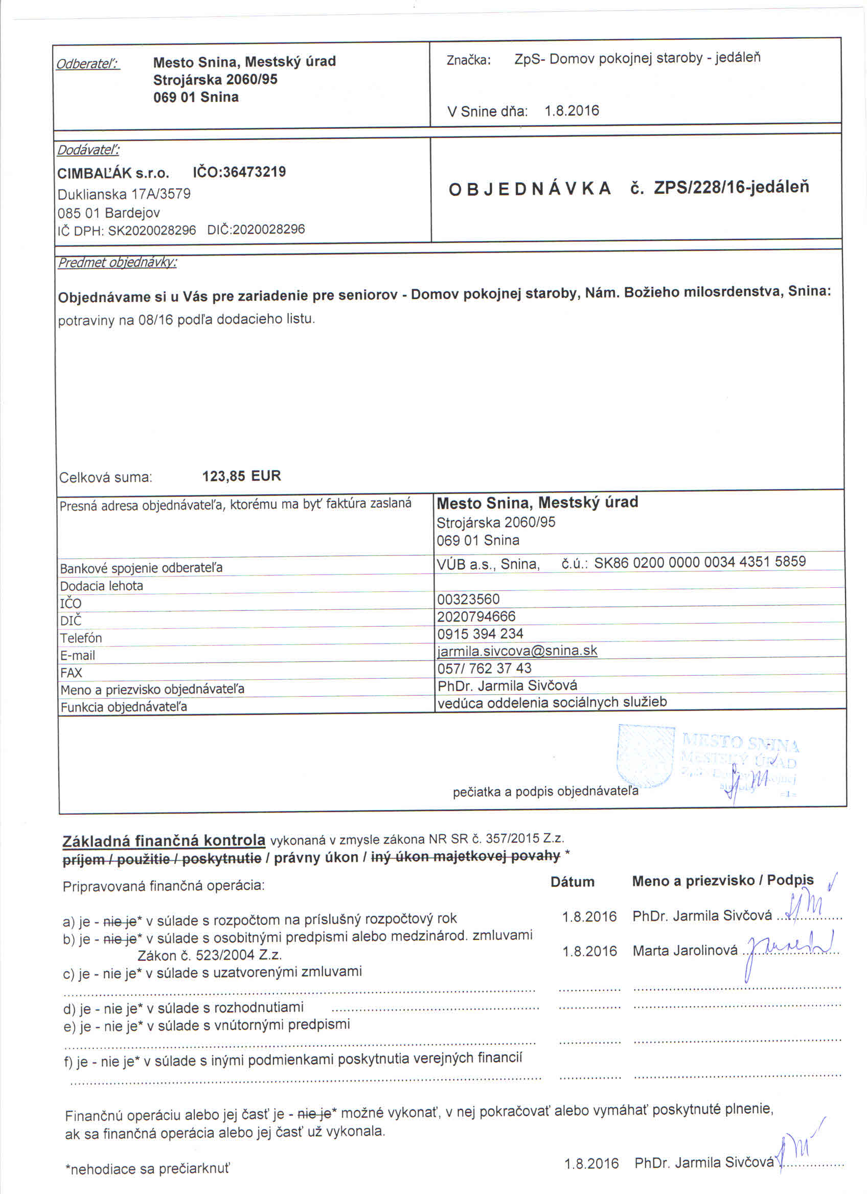 Detail objednávky ZPS/228/16-jedáleň