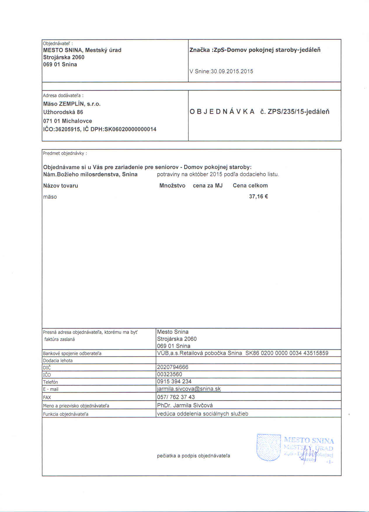 Detail objednávky ZPS/235/15-jedáleň