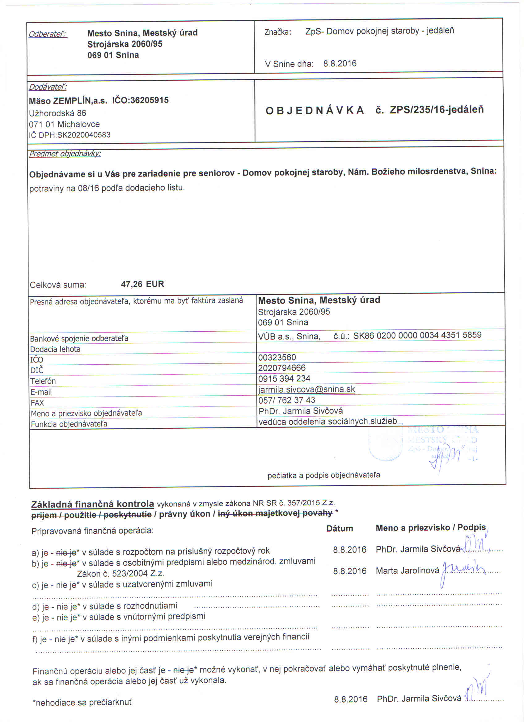 - Mesto Snina, Mestský úrad Snina, Strojárska 2060/95, 069 01 Snina