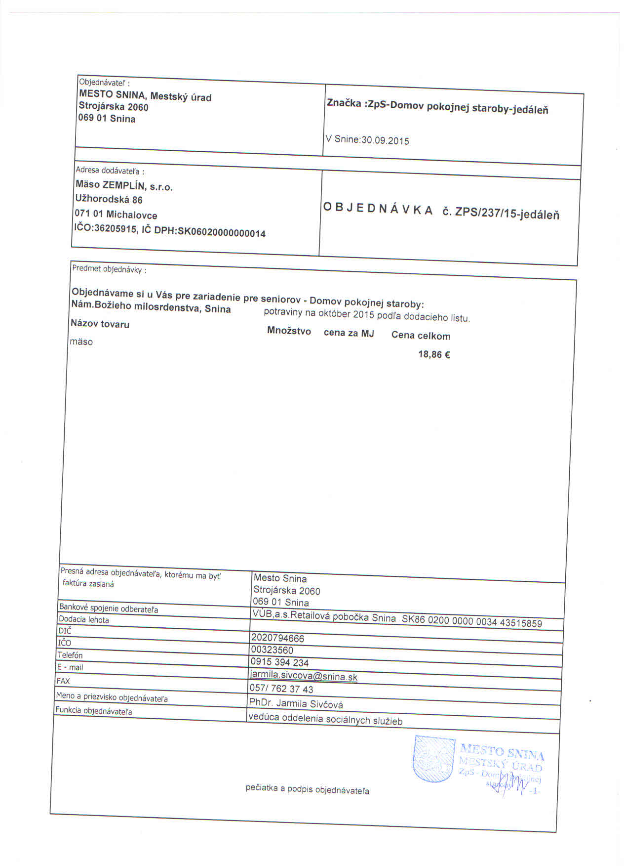 - Mesto Snina, Mestský úrad, Strojárska 2060/95, 069 01 Snin