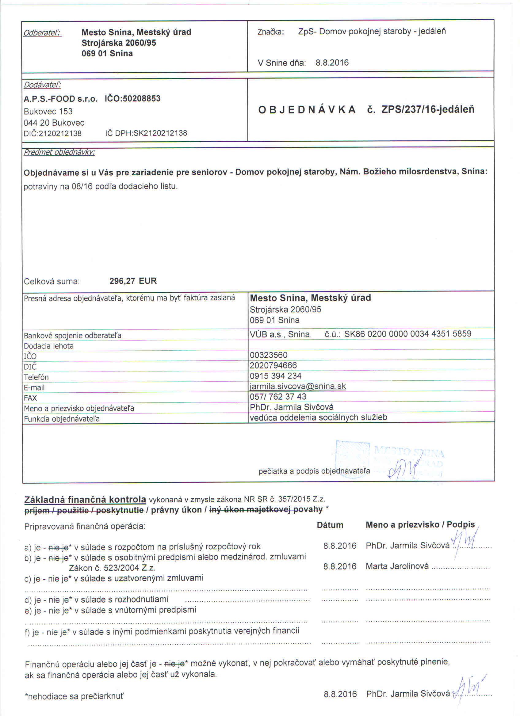 - Mesto Snina, Mestský úrad Snina, Strojárska 2060/95, 069 01 Snina