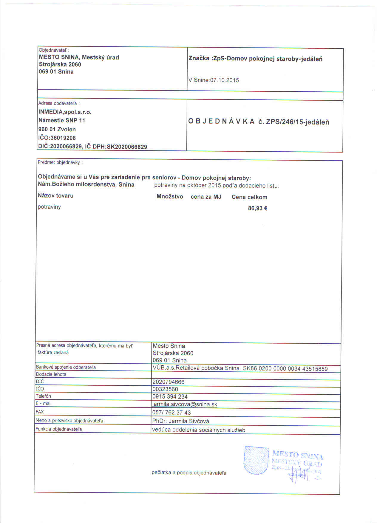 - Mesto Snina, Mestský úrad Snina, Strojárska 2060/95, 069 01 Snina