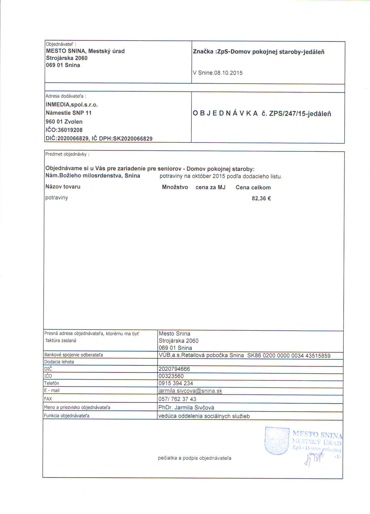 Detail objednávky ZPS/247/15-jedáleň