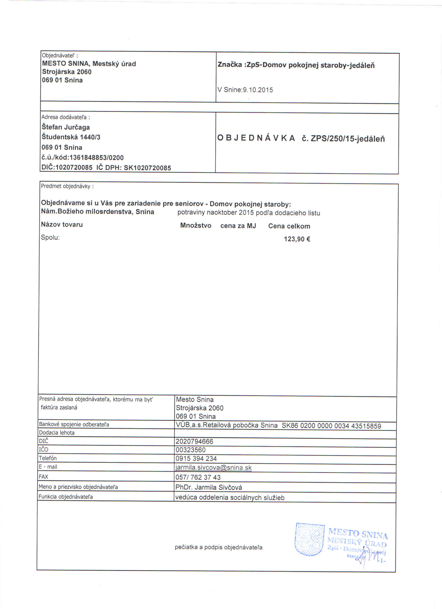 - Mesto Snina, Mestský úrad Snina, Strojárska 2060/95, 069 01 Snina