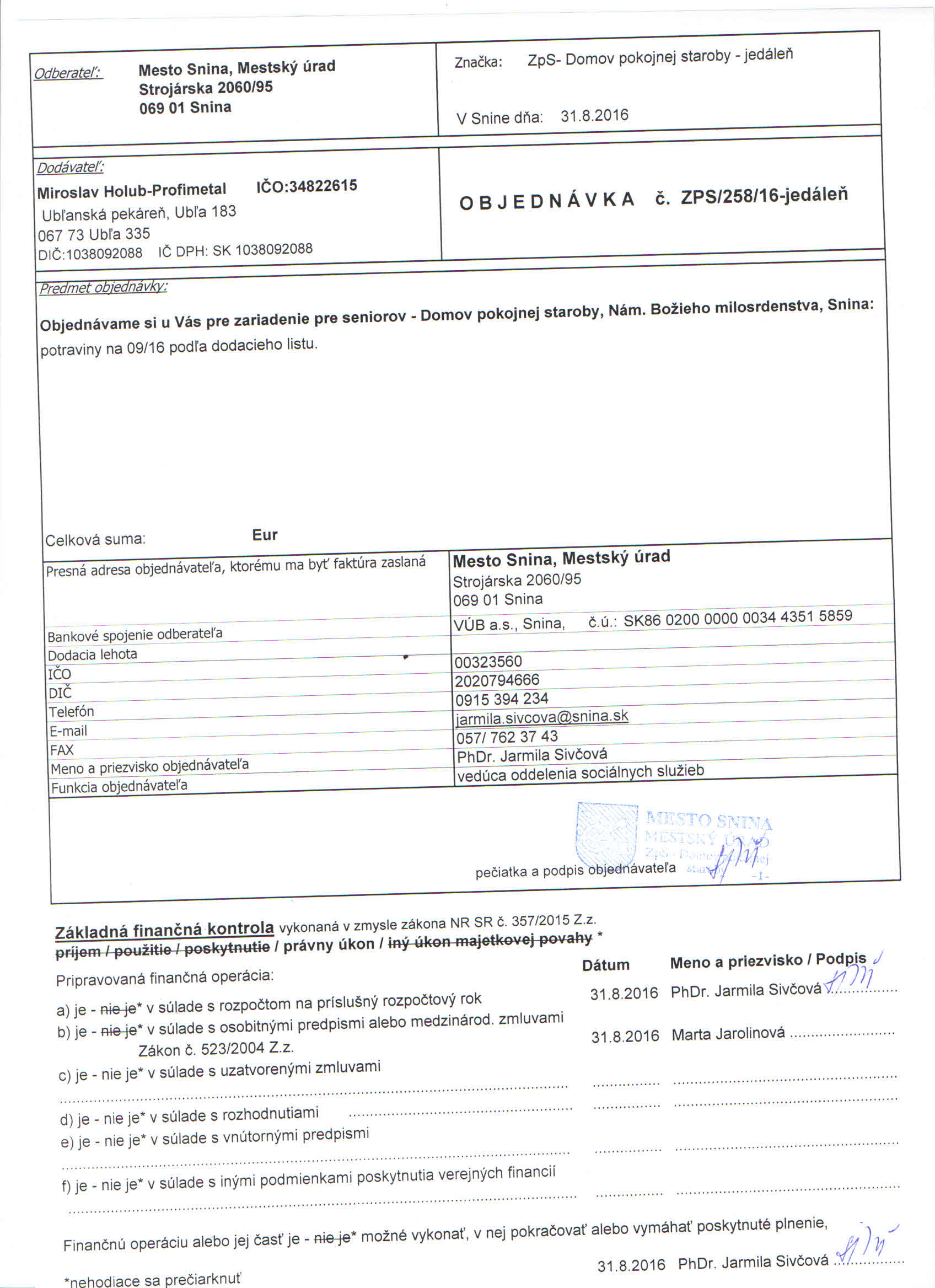 - Mesto Snina, Mestský úrad Snina, Strojárska 2060/95, 069 01 Snina