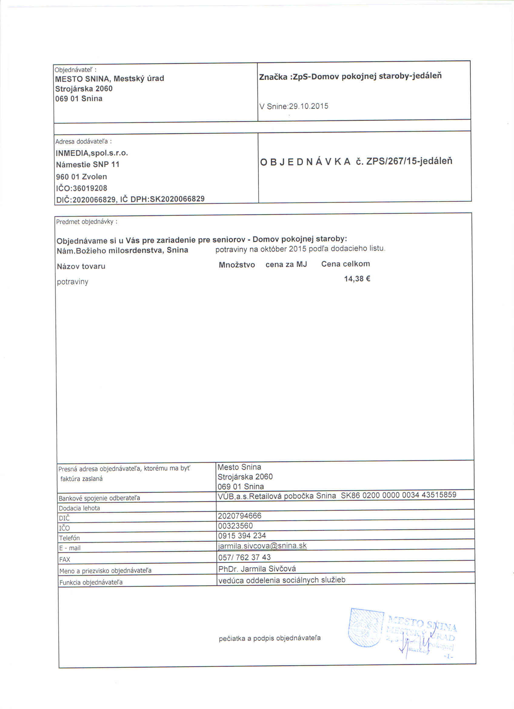 Detail objednávky ZPS/267/15-jedáleň