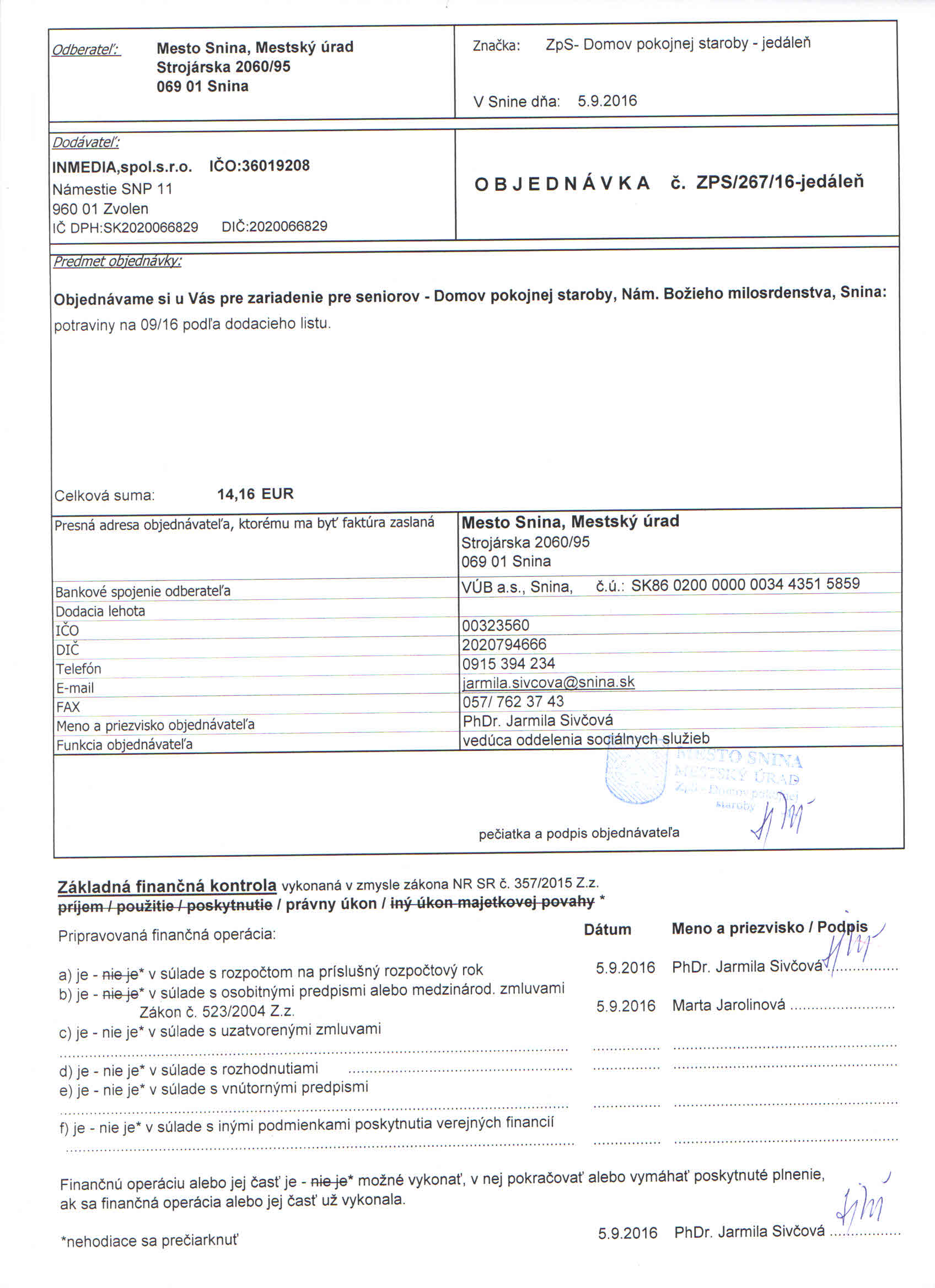 - Mesto Snina, Mestský úrad Snina, Strojárska 2060/95, 069 01 Snina
