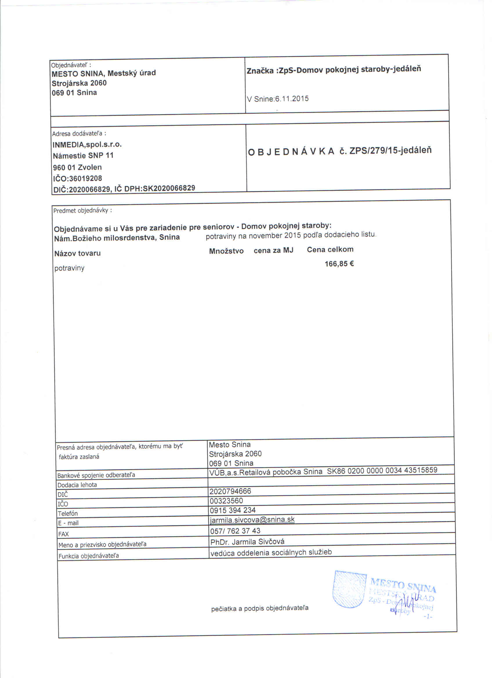 Detail objednávky ZPS/279/15-jedáleň