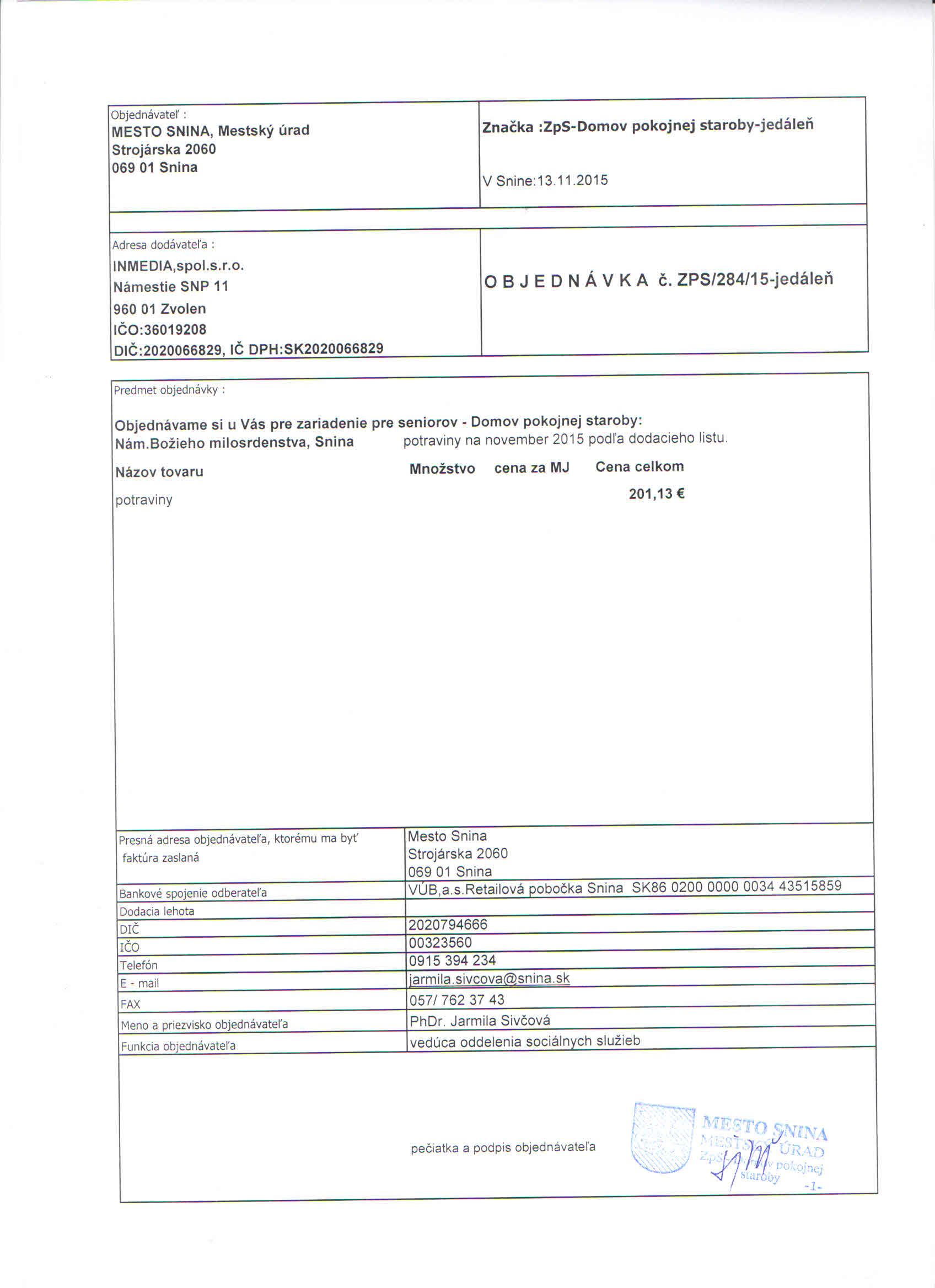 Detail objednávky ZPS/284/15-jedáleň