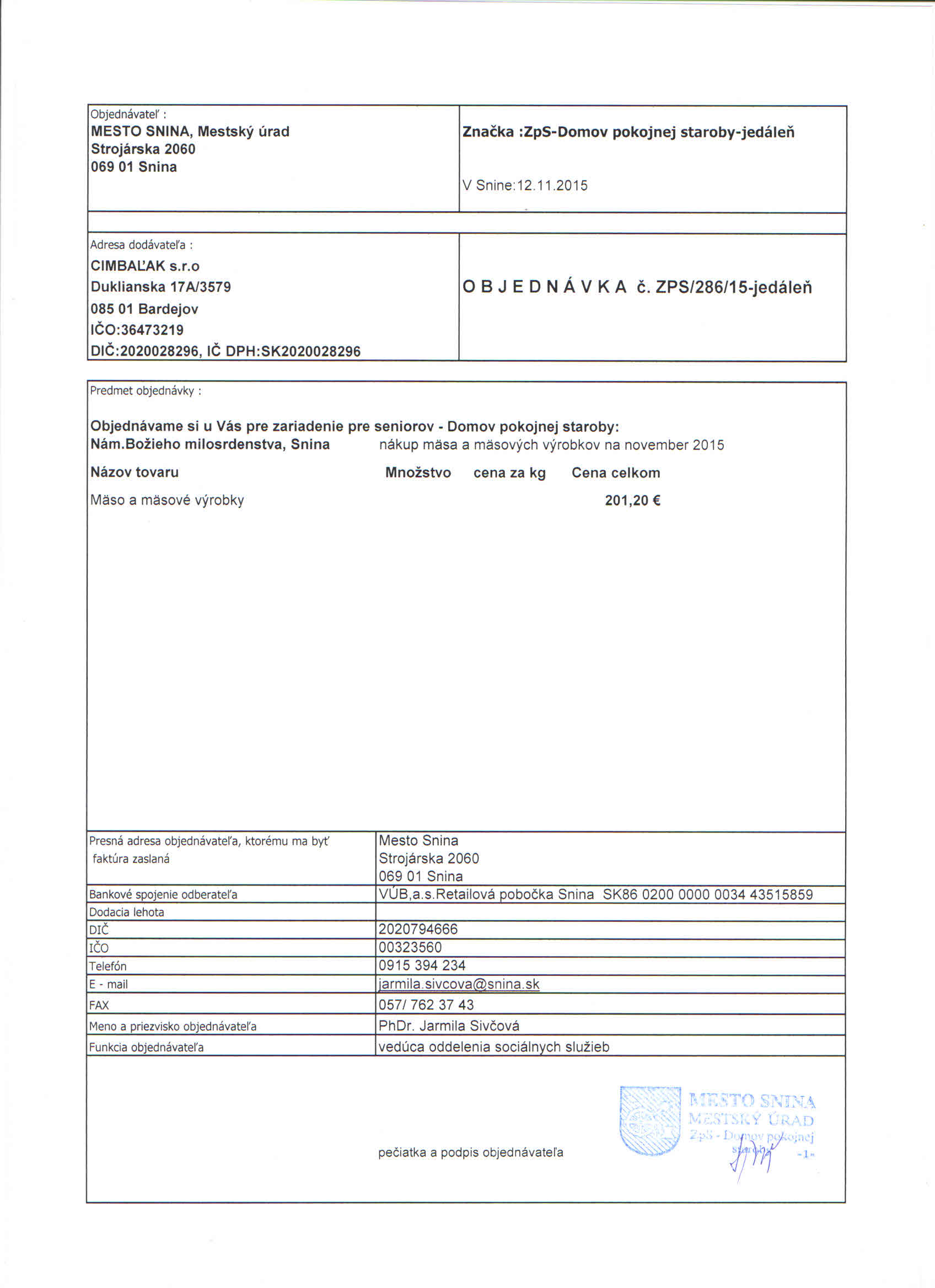 - Mesto Snina, Mestský úrad, Strojárska 2060/95, 069 01 Snina