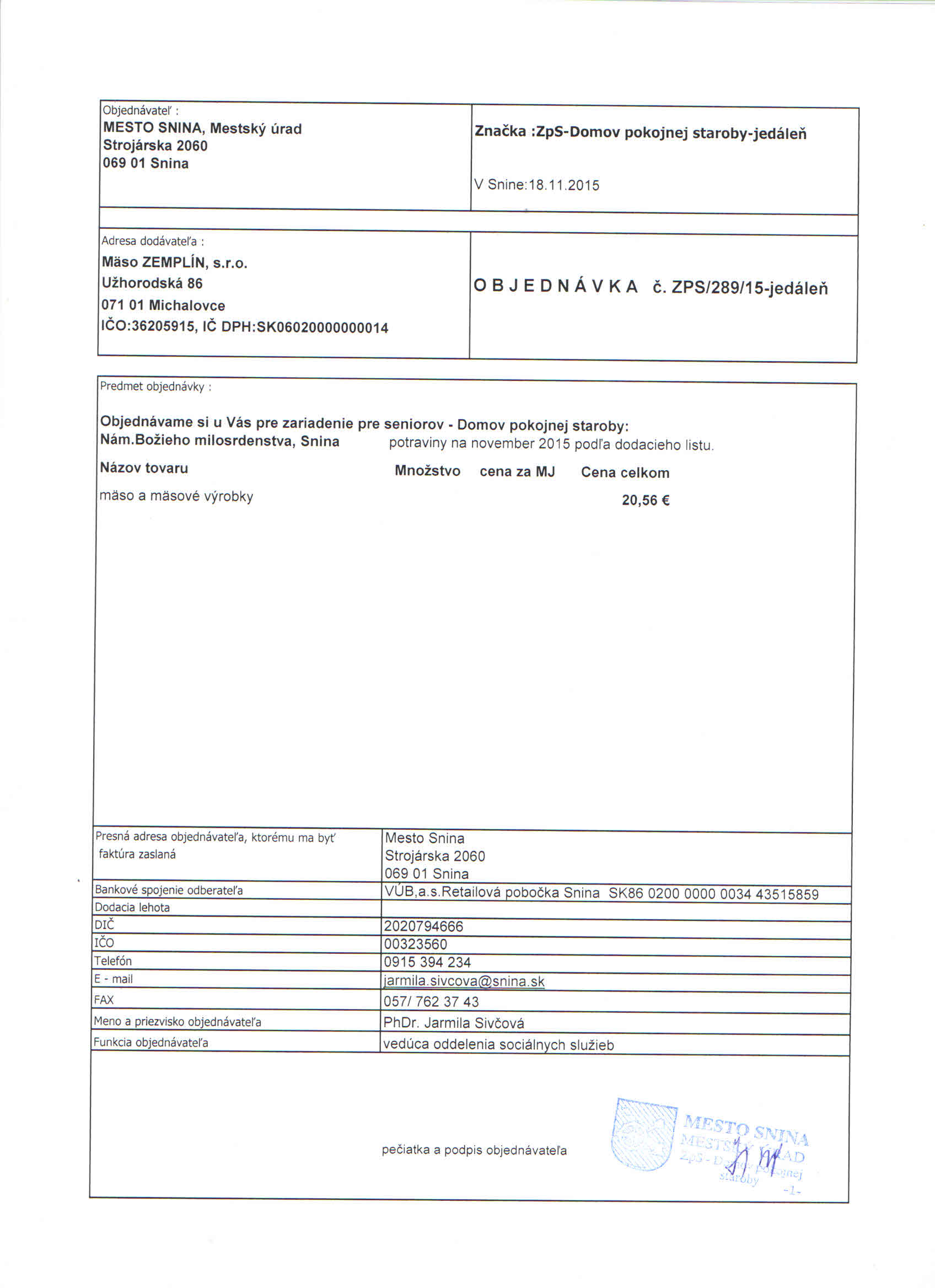 Detail objednávky ZPS/289/15-jedáleň