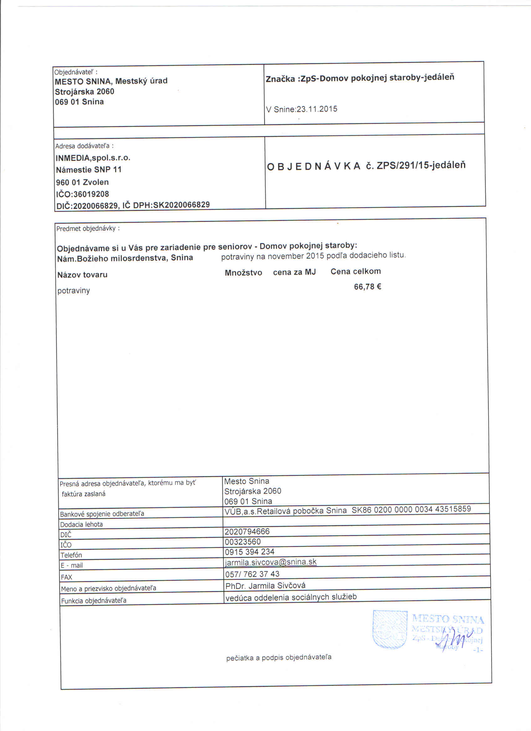 - Mesto Snina, Mestský úrad Snina, Strojárska 2060/95, 069 01 Snina