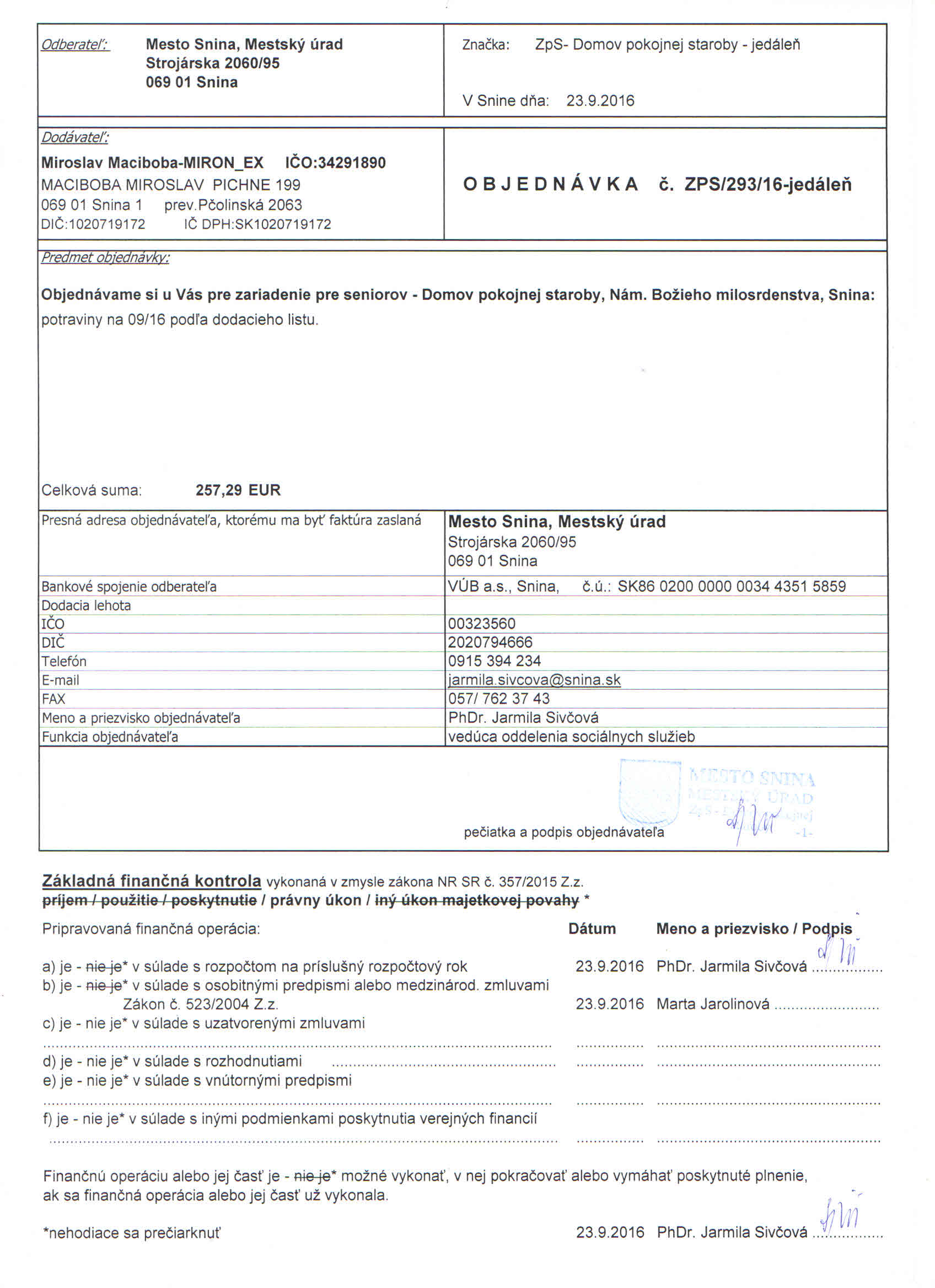 - Mesto Snina, Mestský úrad Snina, Strojárska 2060/95, 069 01 Snina