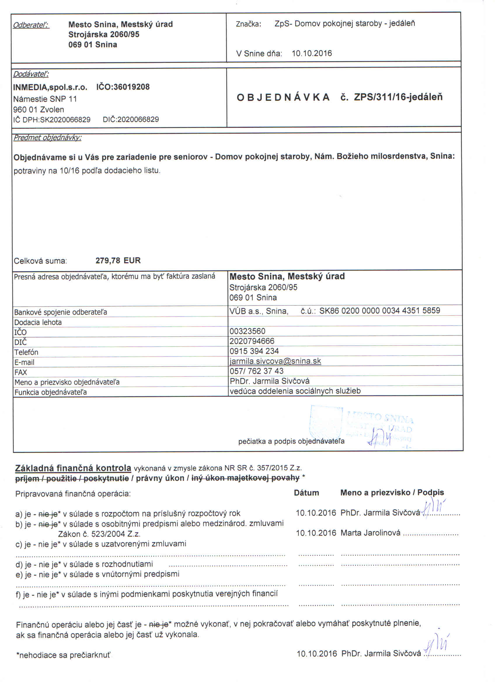 - Mesto Snina, Mestský úrad Snina, Strojárska 2060/95, 069 01 Snina