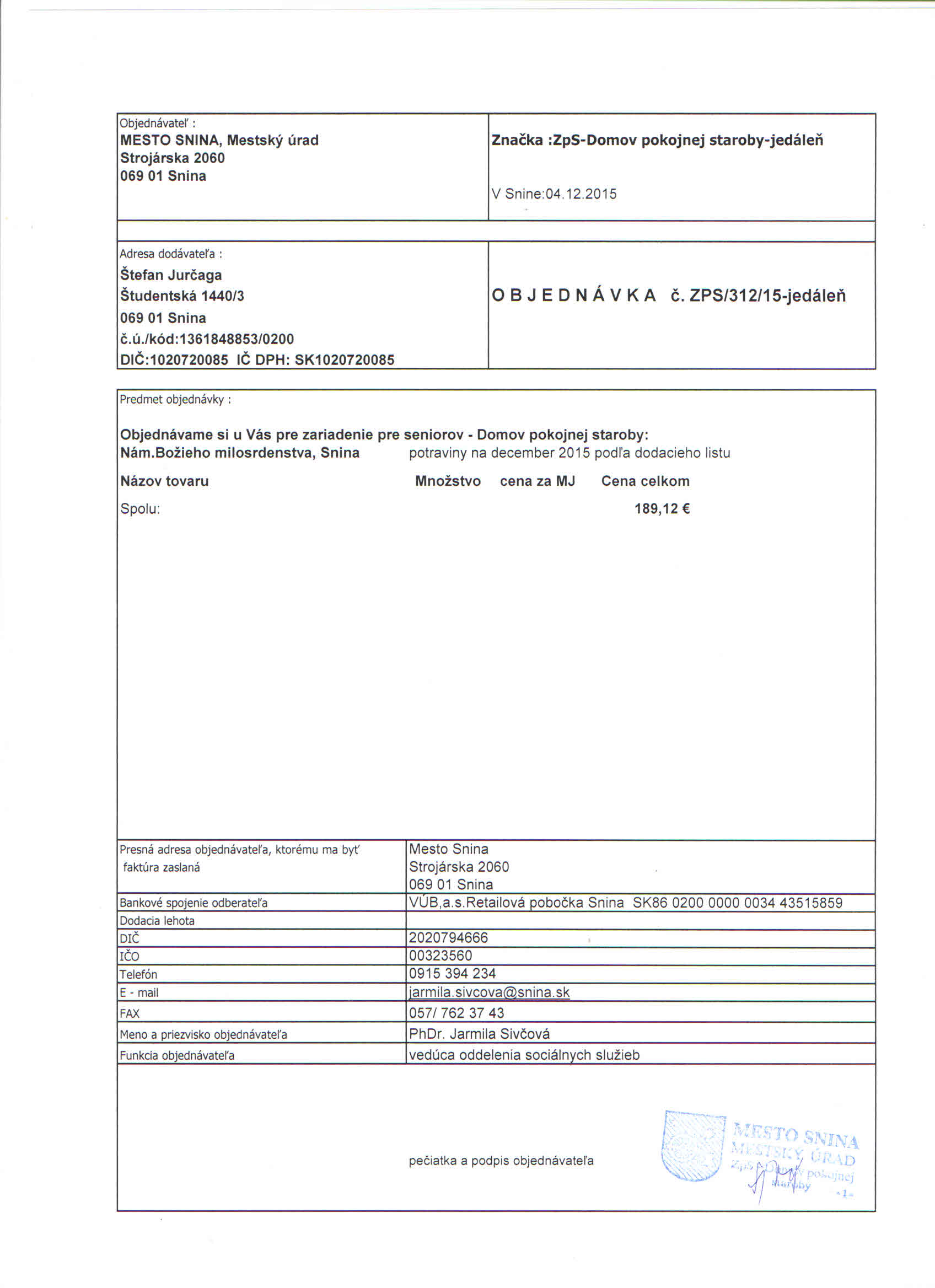 Detail objednávky ZPS/312/15