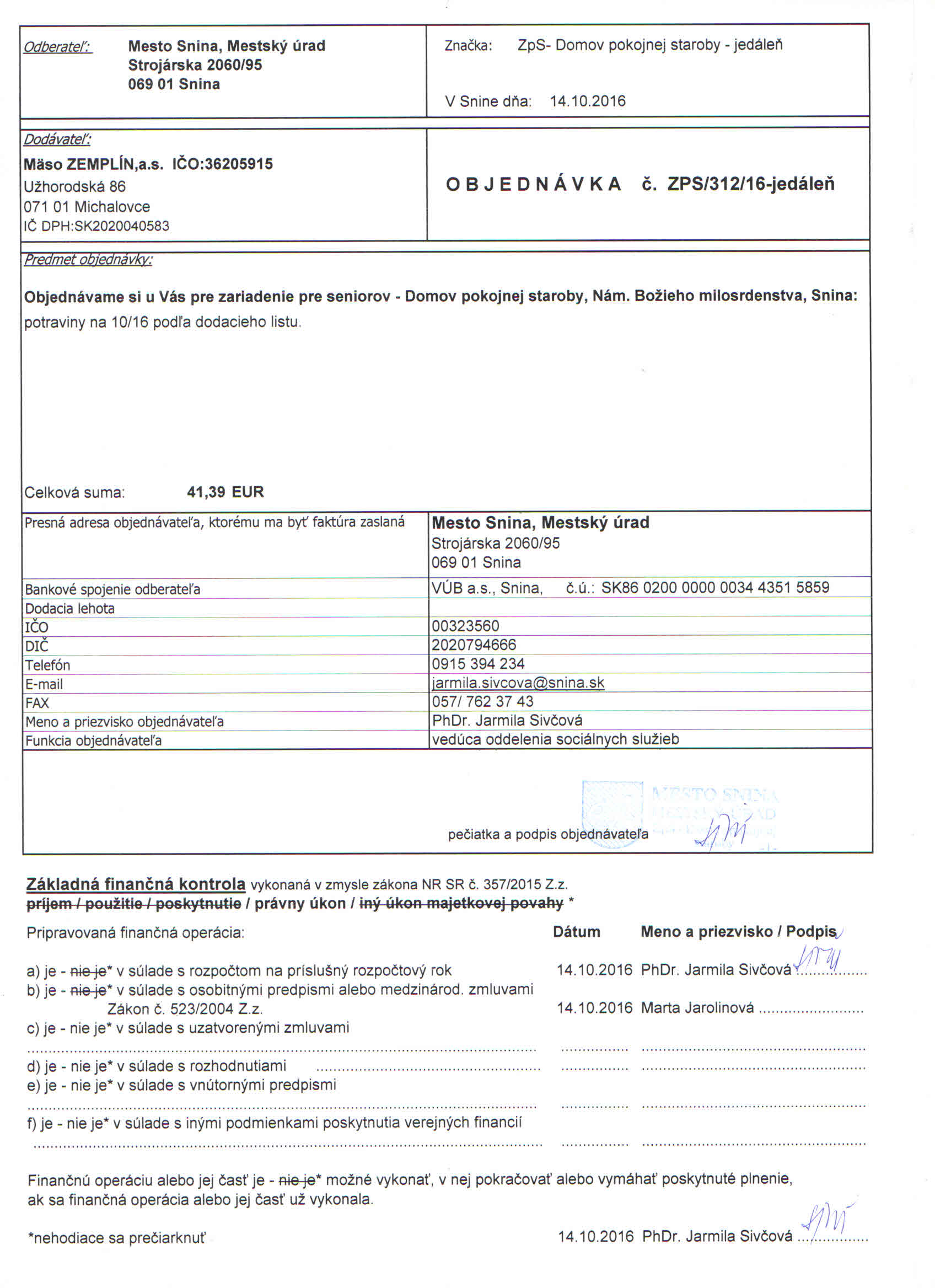 - Mesto Snina, Mestský úrad Snina, Strojárska 2060/95, 069 01 Snina