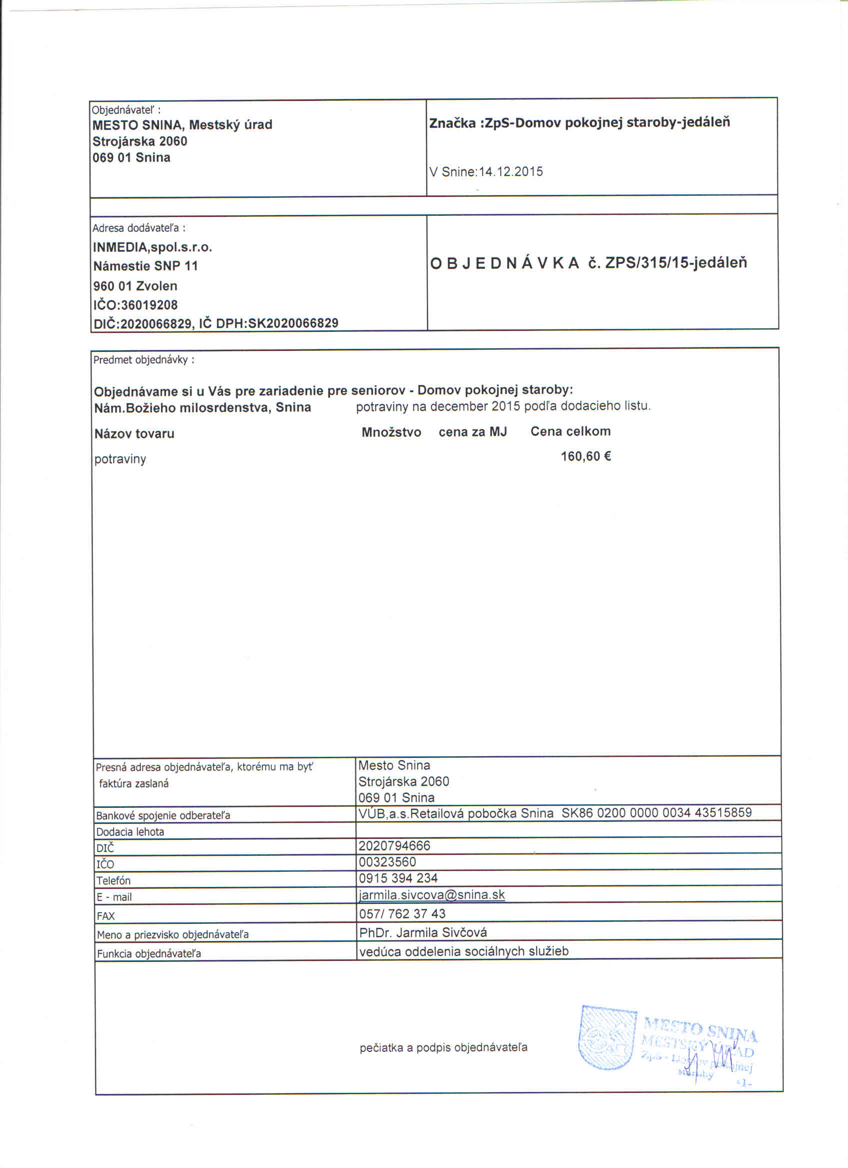 Detail objednávky ZPS/315/15