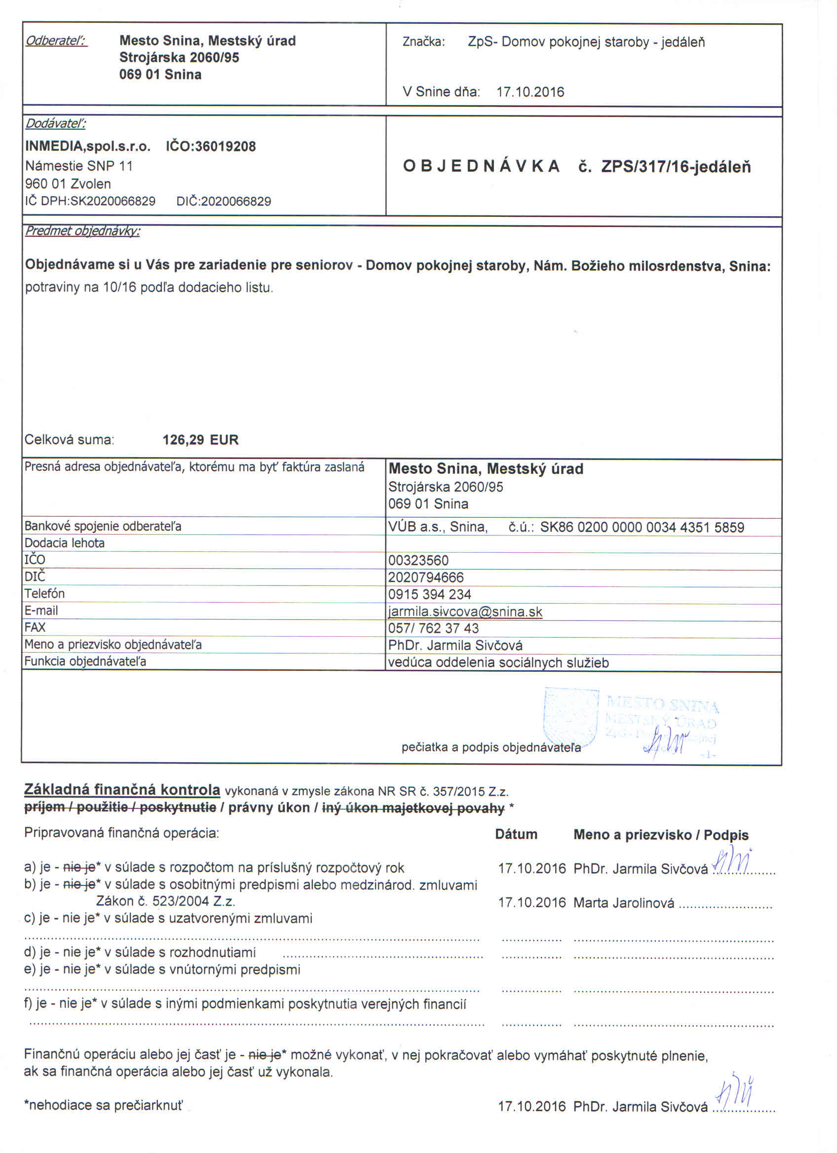 - Mesto Snina, Mestský úrad, Strojárska 2060/95, 069 01 Snin