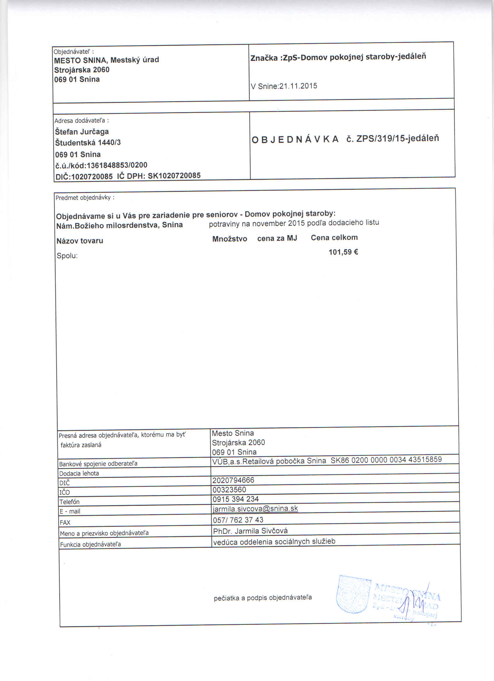 Detail objednávky ZPS/319/15-jedáleň