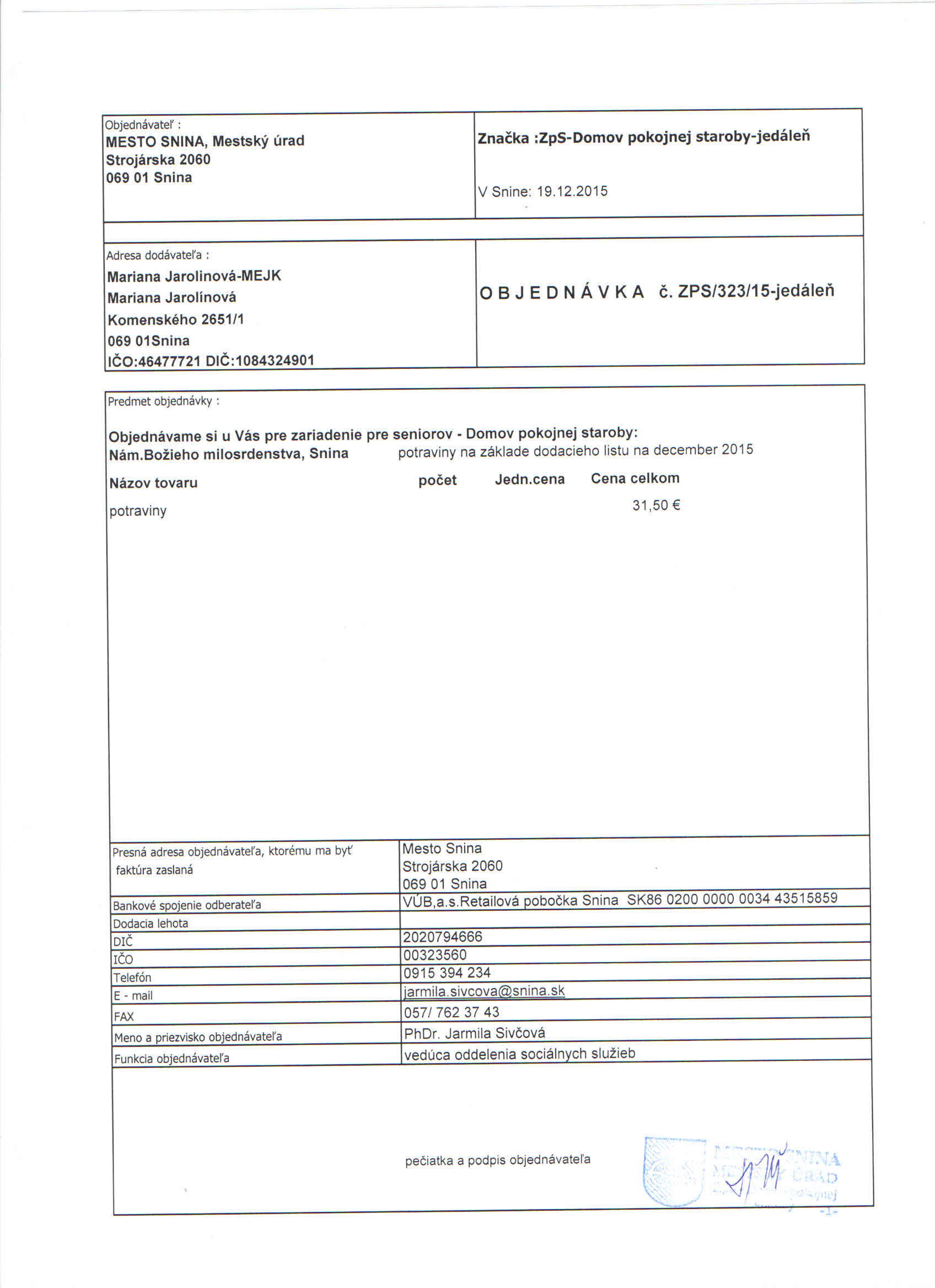 - Mesto Snina, Mestský úrad Snina, Strojárska 2060/95, 069 01 Snina