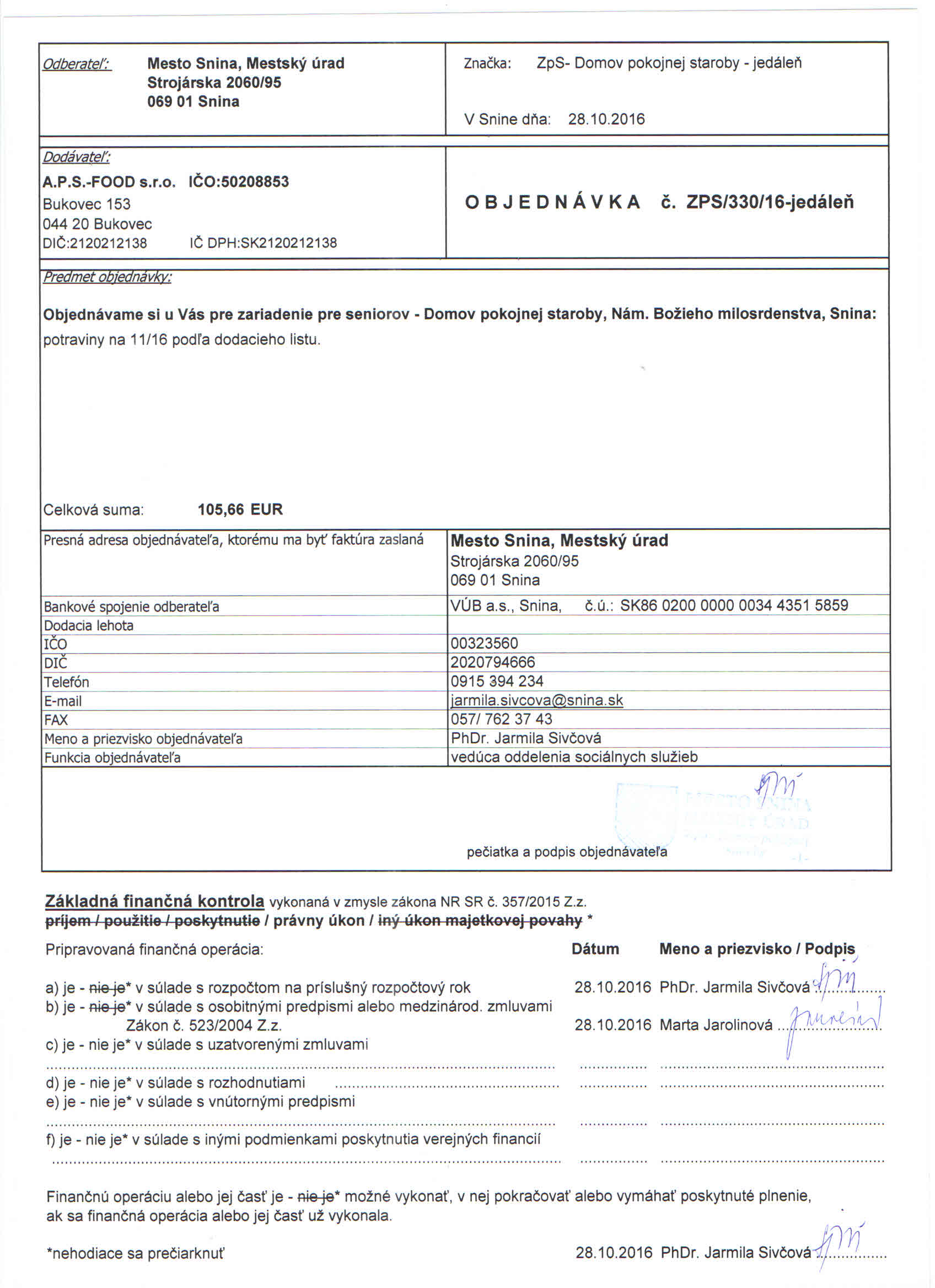 Detail objednávky ZPS/330/16-jedáleň