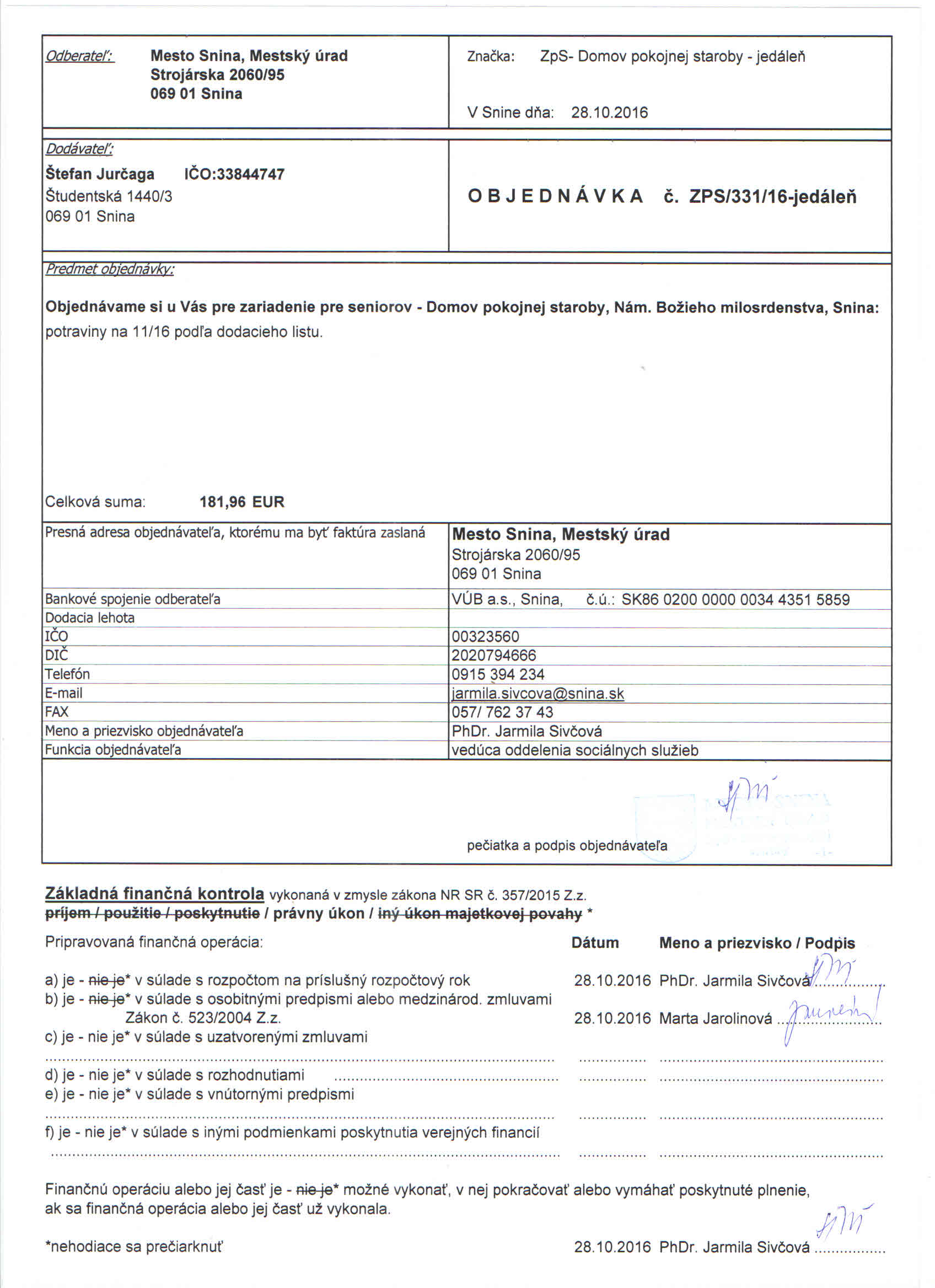 - Mesto Snina, Mestský úrad Snina, Strojárska 2060/95, 069 01 Snina