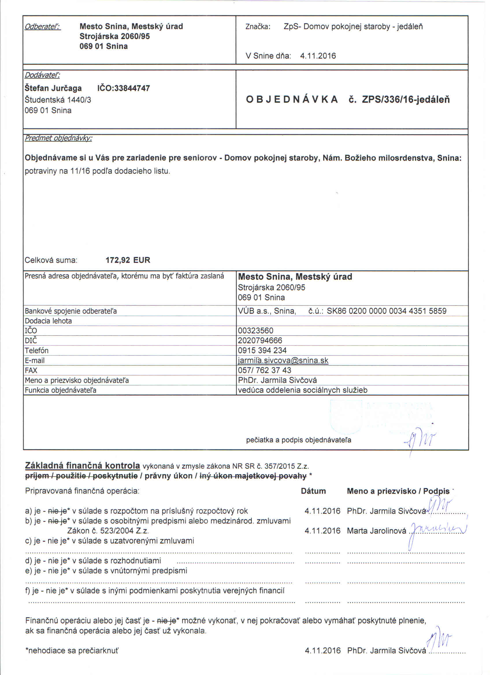 - Mesto Snina, Mestský úrad, Strojárska 2060/95, 069 01 Snina