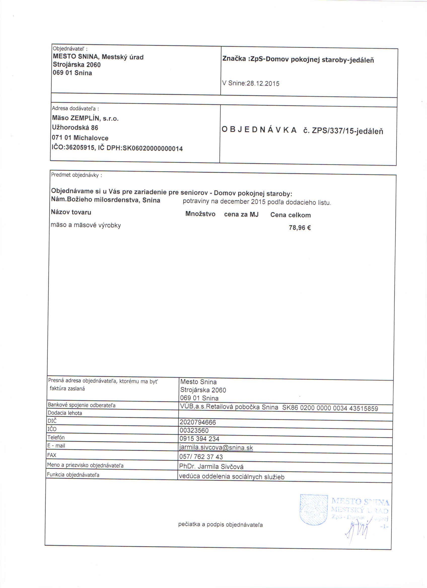 Detail objednávky ZPS/337/15-jedáleň