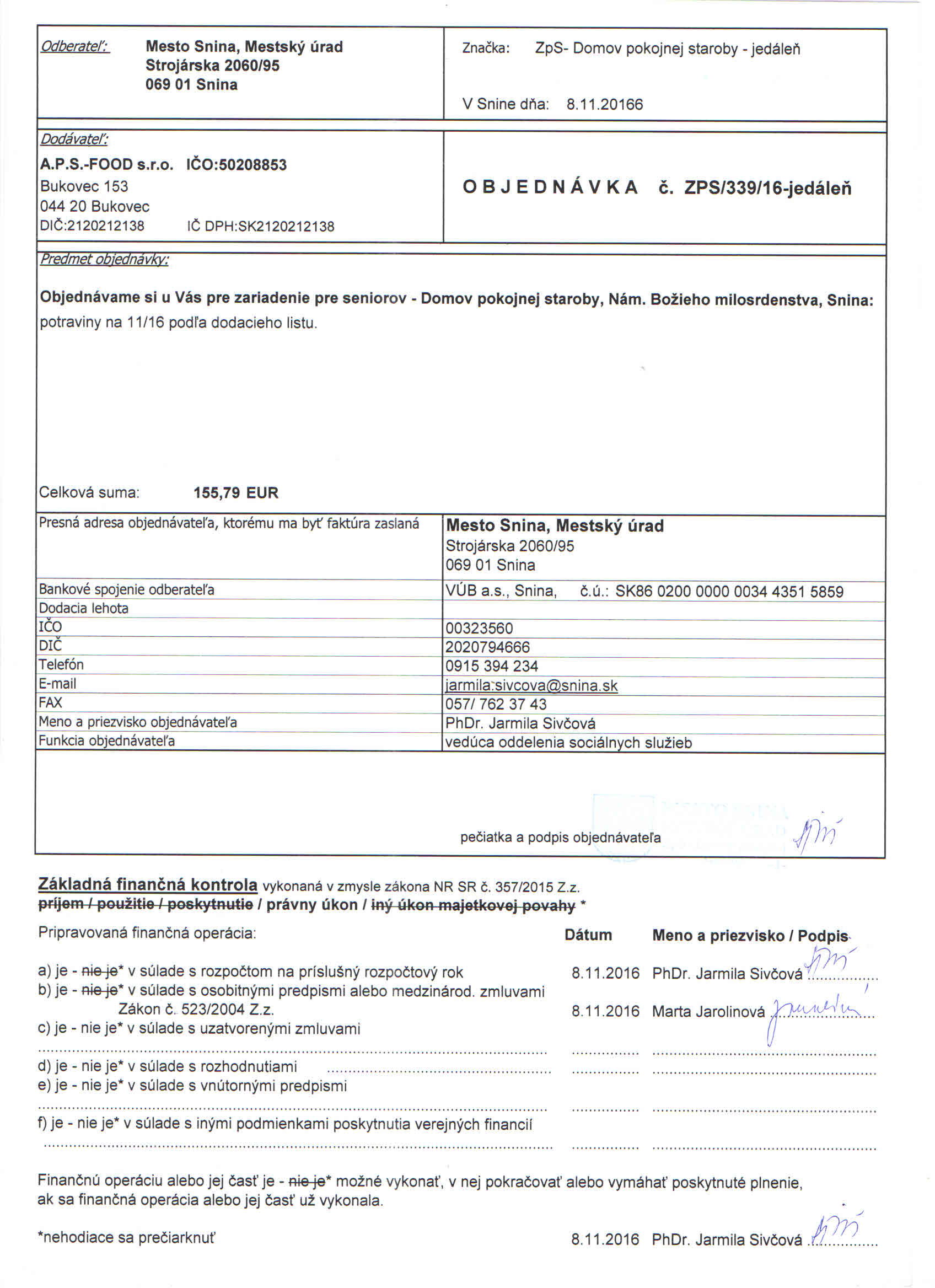 - Mesto Snina, Mestský úrad, Strojárska 2060/95, 069 01 Snina