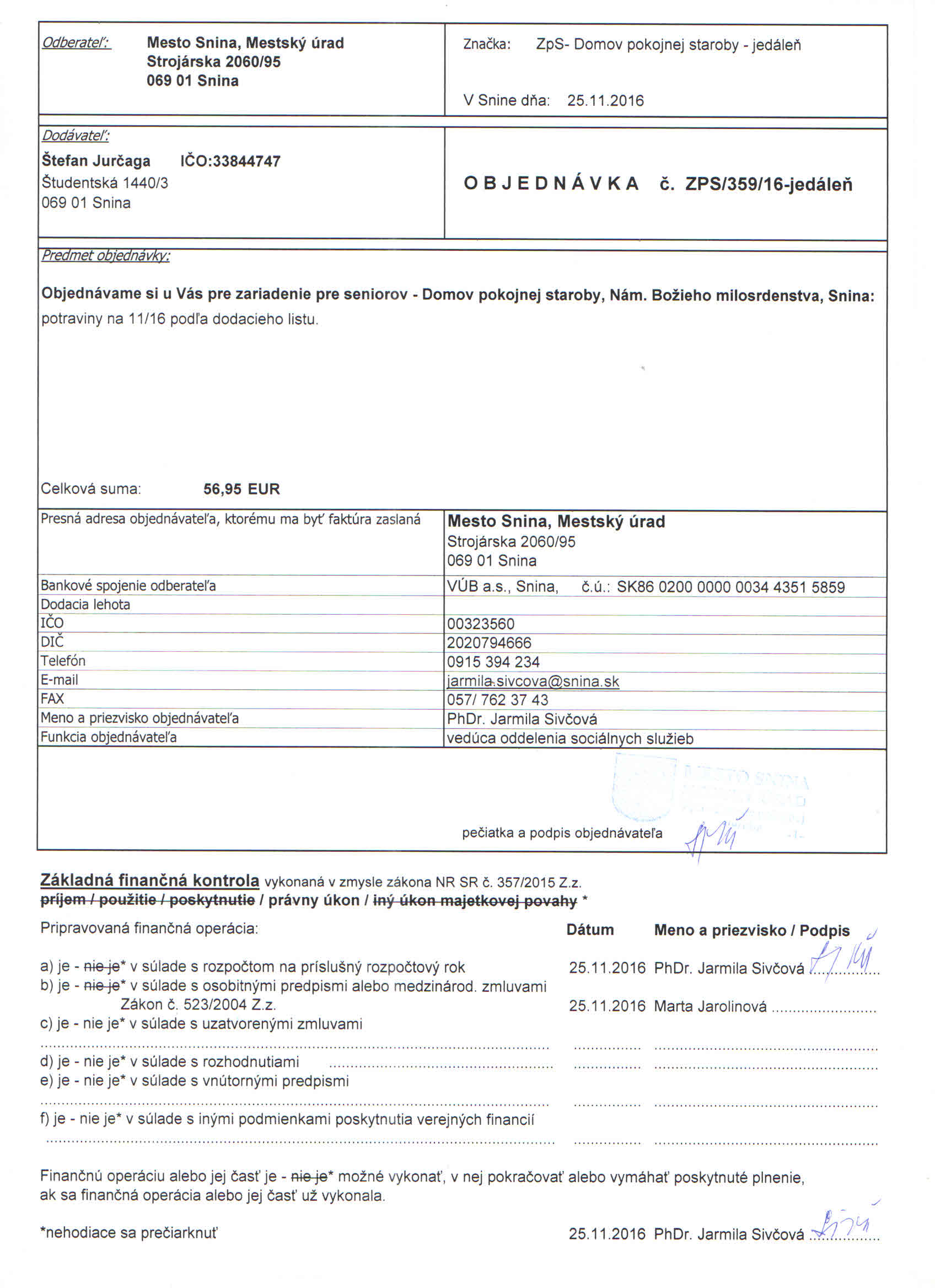 Detail objednávky ZPS/359/16-jedáleň