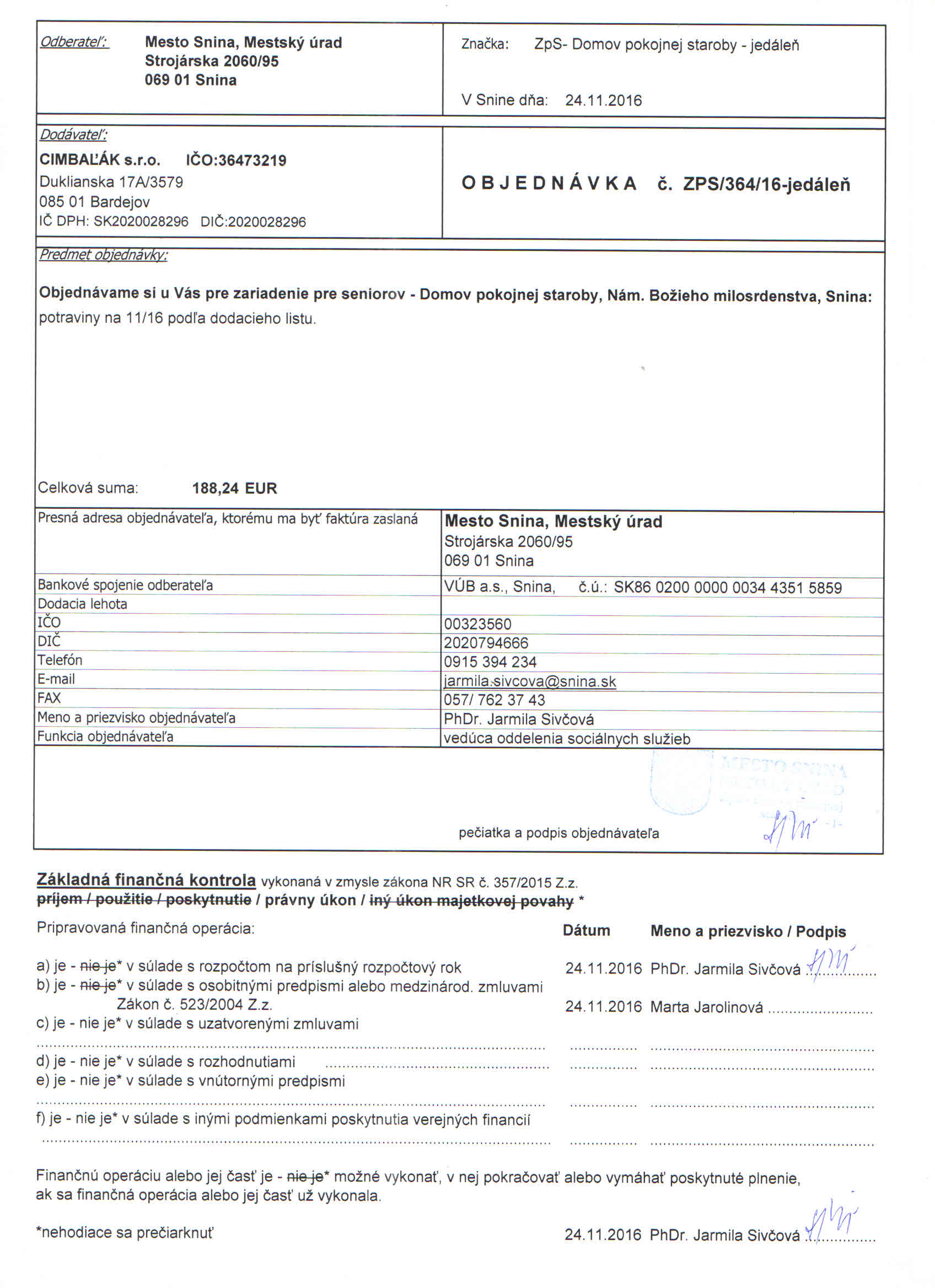 - Mesto Snina, Mestský úrad, Strojárska 2060/95, 069 01 Snin
