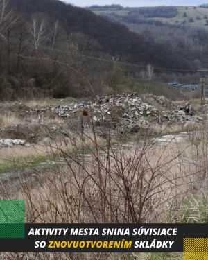 Mesto Snina v súvislosti s riešením problematiky rekultivácie a prípadného znovuotvorenia skládky komunálneho odpadu priebežne realizuje viaceré odborné, technické a konzultačné aktivity.