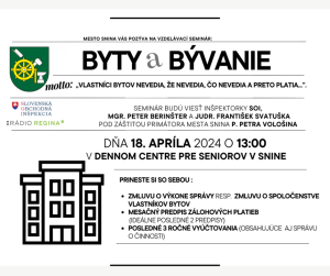 Pozývame vás na seminár Byty a bývanie, ktorý je určený predovšetkým pre seniorov, ale aj širokú verejnosť.