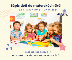 Milí rodičia, v priebehu mesiaca máj môžete svoje dieťa zapísať do materskej školy.
