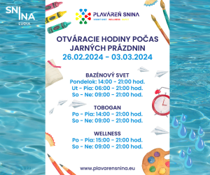 Plaváreň Snina bude otvorená počas školských jarných prázdnin aj v pondelok.