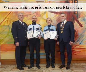Na pôde mestského úradu si ocenenie za vzornú službu a mimoriadnu aktivitu prevzali príslušníčka mestskej polície PhDr. Martina Petríková a príslušník mestskej polície Igor Cucko.