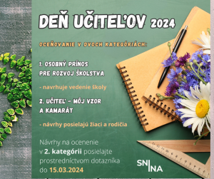 Aj tento rok ocení Mesto Snina pedagógov v dvoch kategóriách.