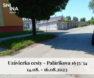 Uzávierka cesty na Ulici Palárikovej 1635/34