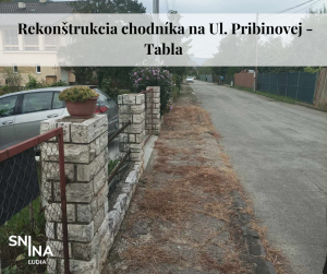 Rekonštrukcia chodníka na Ul. Pribinovej – lokalita Tabla