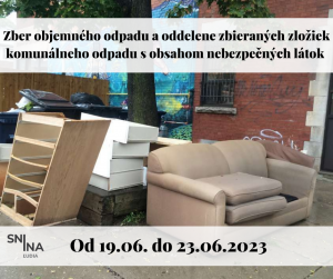 V termíne od 19.06. do 23.06.2023 sa v meste uskutoční mobilný zber objemného odpadu a oddelene zbieraných zložiek komunálneho odpadu z domácností s obsahom nebezpečných látok.