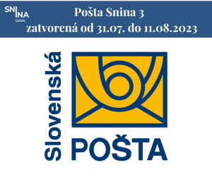 Podávacia Pošta Snina 3, na Ul. Komenského 2661/11 bude dočasne zatvorená, od 31.07.2023 do 11.08.2023.