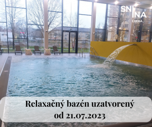 V dôsledku nevyhovujúcich výsledkov vzoriek vody pre umelé kúpaliská je Plaváreň Snina nútená uzatvoriť relaxačný bazén,