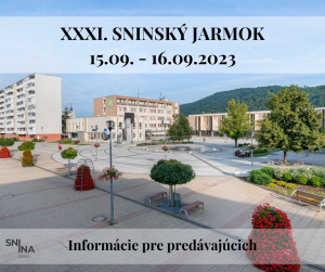 Mesto Snina Vás pozýva na XXXI. SNINSKÝ JARMOK, ktorý sa uskutoční 15.09. - 16.09.2023.