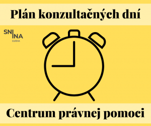 Plán konzultačných dní Centra právnej pomoci v Snine
