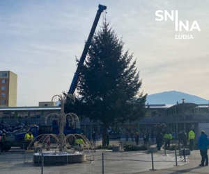 Dnes bol na námestí Centrum, pomocou techniky osadený vianočný stromček.