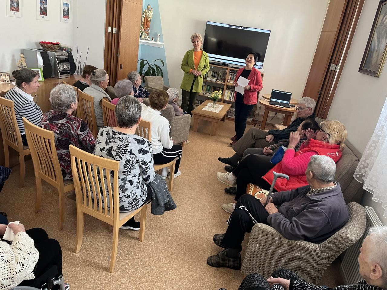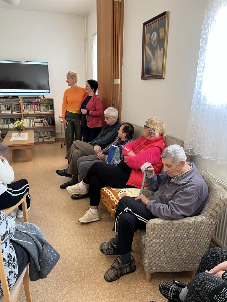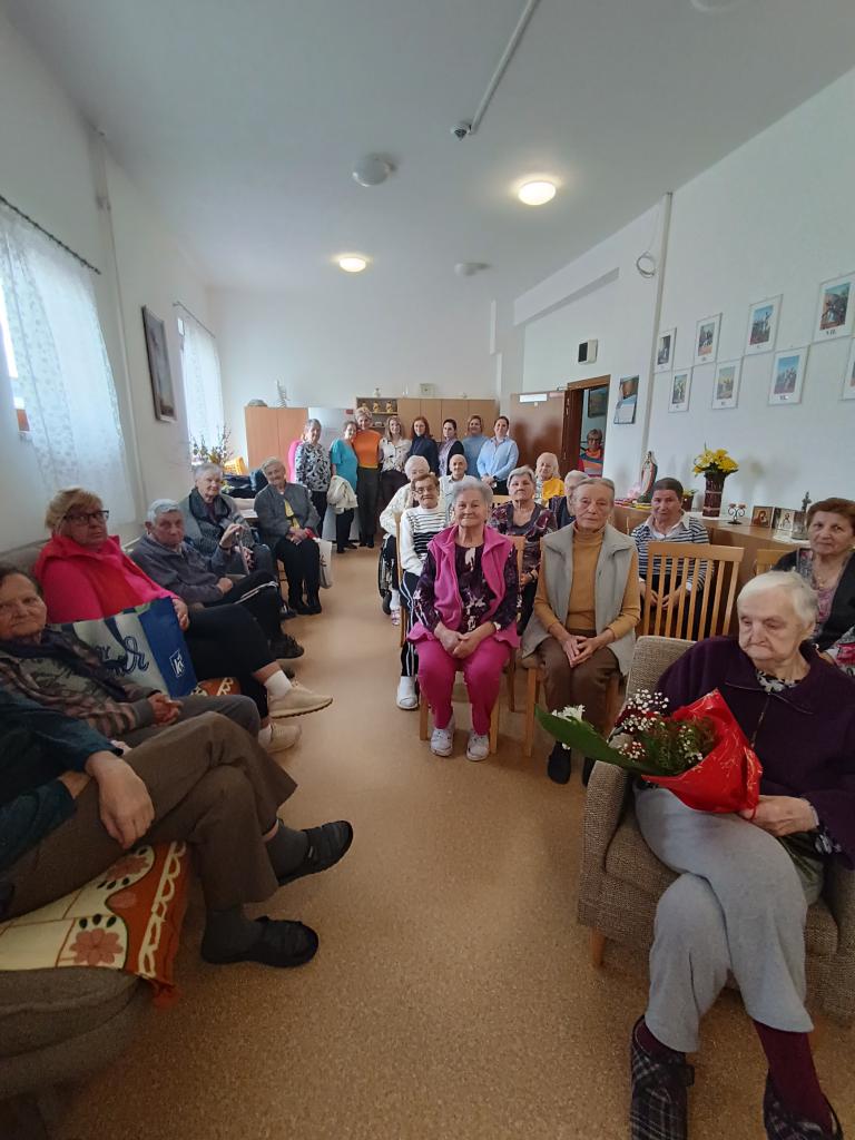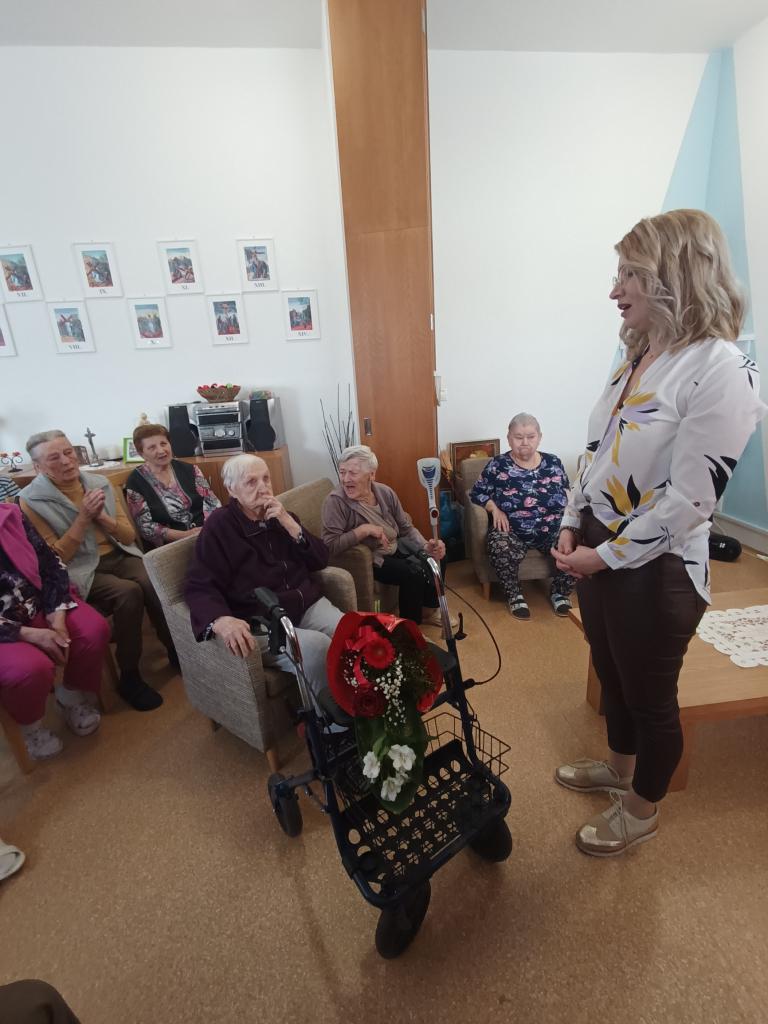 Stretnutie umocnilo aj to, že jedna z prijímateliek mala krásne 90-te narodeniny a blahoželanie prišlo samozrejme aj od p. Valérie. Ostatní sa pridali s prianím pevného zdravia, spokojnosti a pohody.