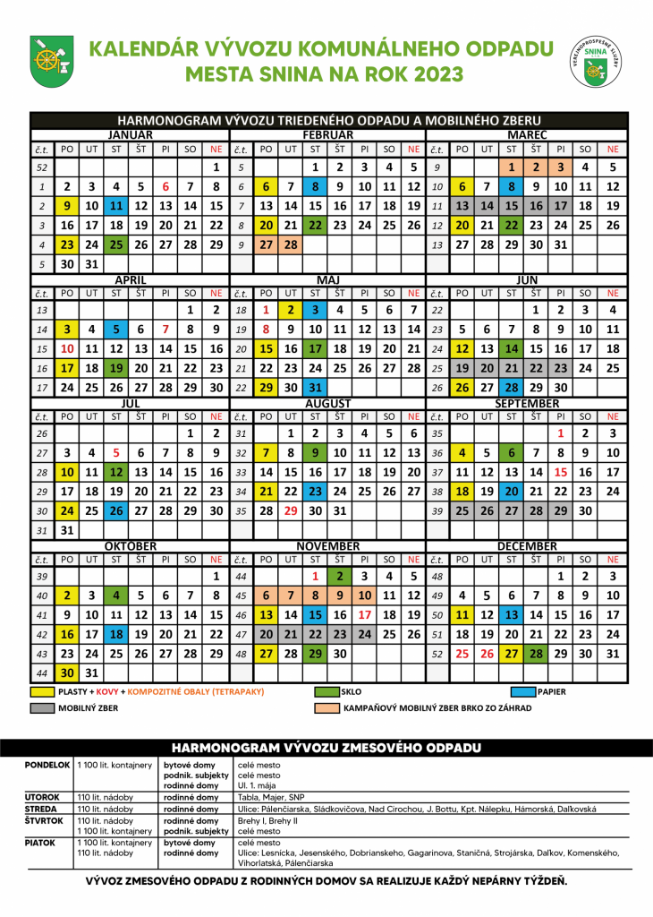 Kalendár vývozu komunálneho odpadu na rok 2023