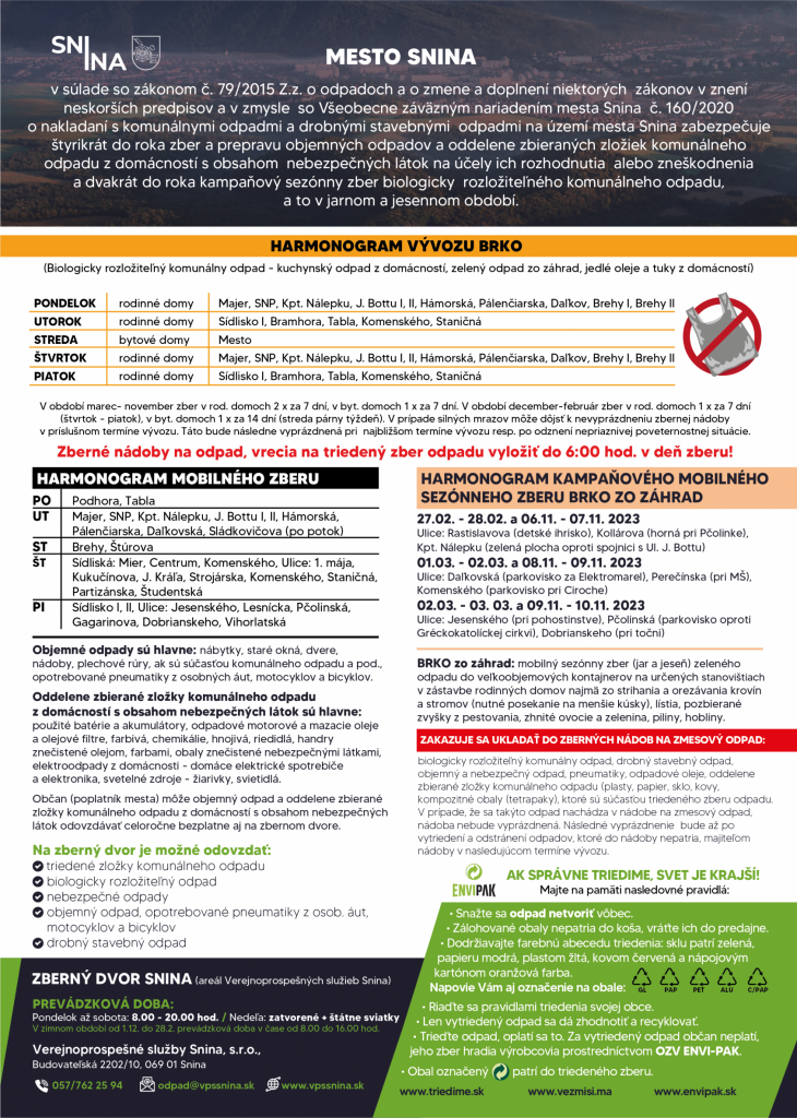 Občania, ktorým tento kalendár nebude doručený z dôvodu chýbajúcej, prípadne poškodenej schránky si ho môžu vyzdvihnúť aj osobne, a to na vrátnici Verejnoprospešných služieb Snina.