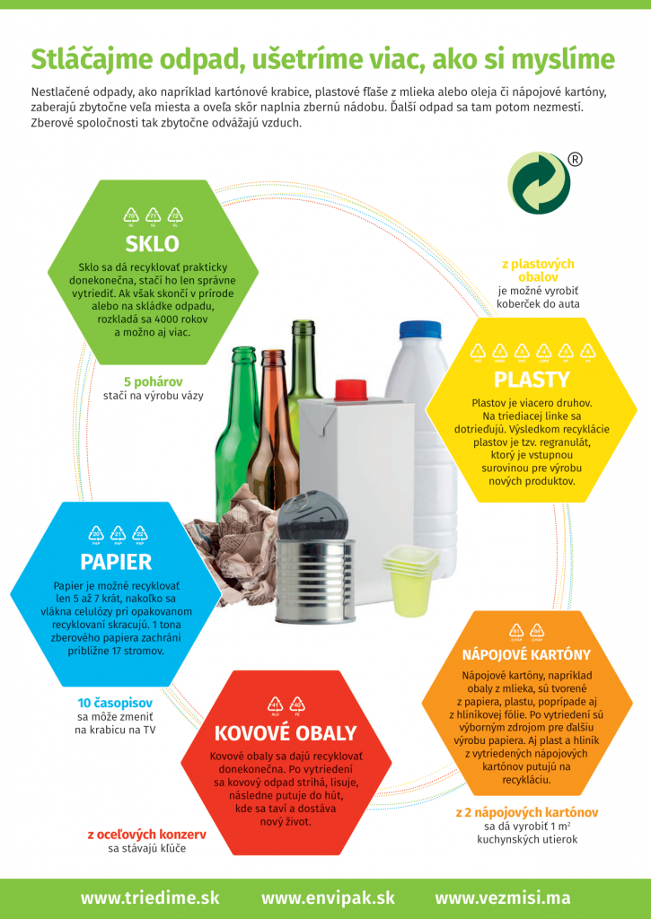 - Dôsledné triedenie odpadu významne redukuje množstvo zmesového komunálneho odpadu, za ktorý platia obyvatelia. Triedený zber je pre obyvateľov zdarma, platia ho výrobcovia prostredníctvom OZV.