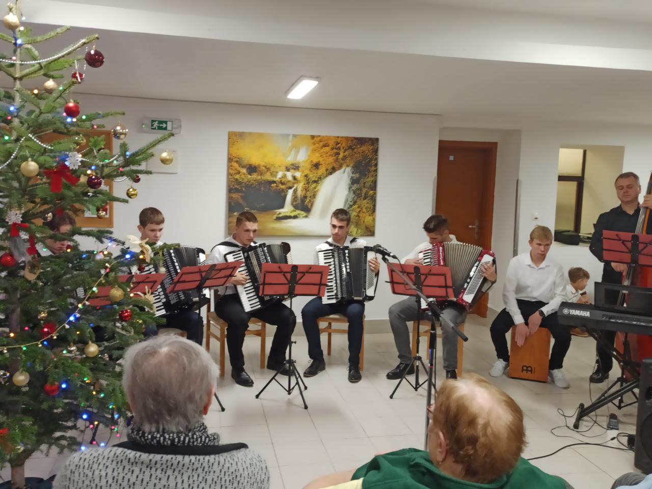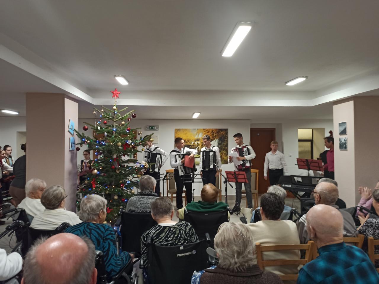Vianočný koncert pripravili i učitelia so žiakmi Základnej umeleckej školy. Starkým rozdali balíčky z projektu „Koľko lásky sa zmestí do krabice od topánok“.
